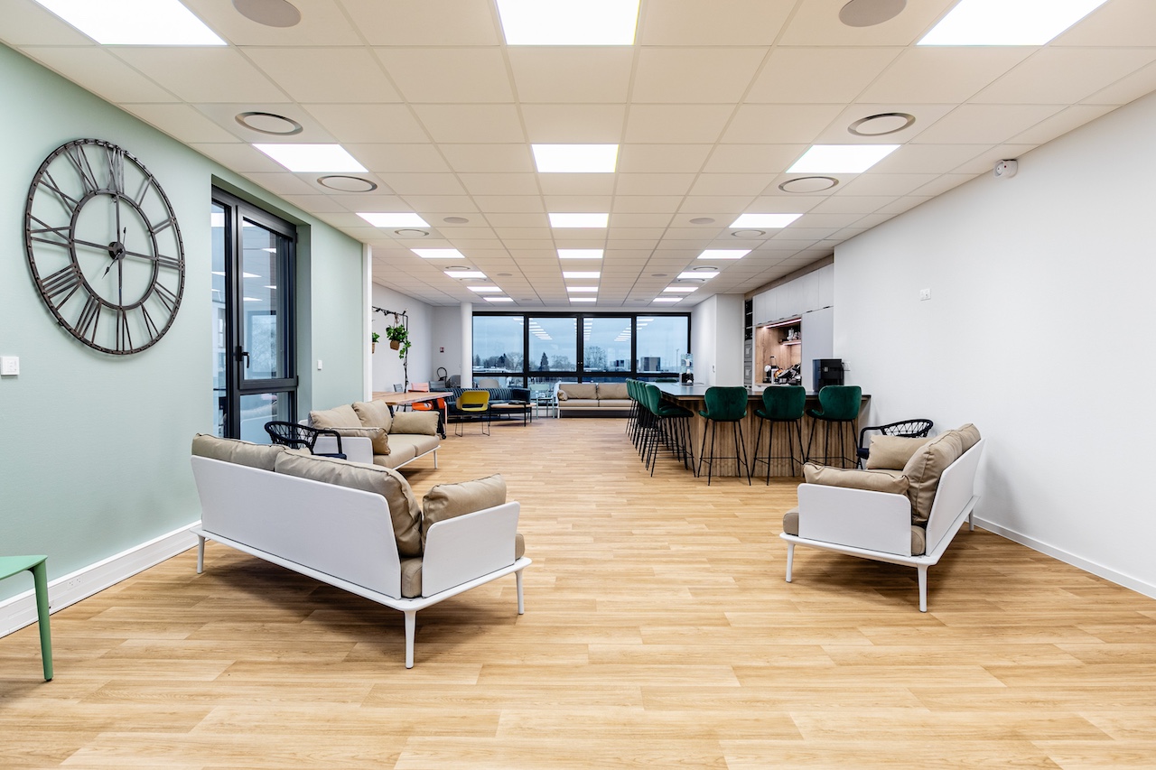 Sur cette opération, le groupe a assuré un rôle central, en intervenant à la fois en maîtrise d’œuvre d’exécution et en réalisation tous corps d’état, incluant le gros œuvre et l’ensemble des lots techniques et architecturaux. Cette organisation a permis une coordination fluide du chantier, de la phase structurelle jusqu’à la livraison. Des panneaux photovoltaïques en toiture assure également une partie d’autoconsommation du bâtiment.