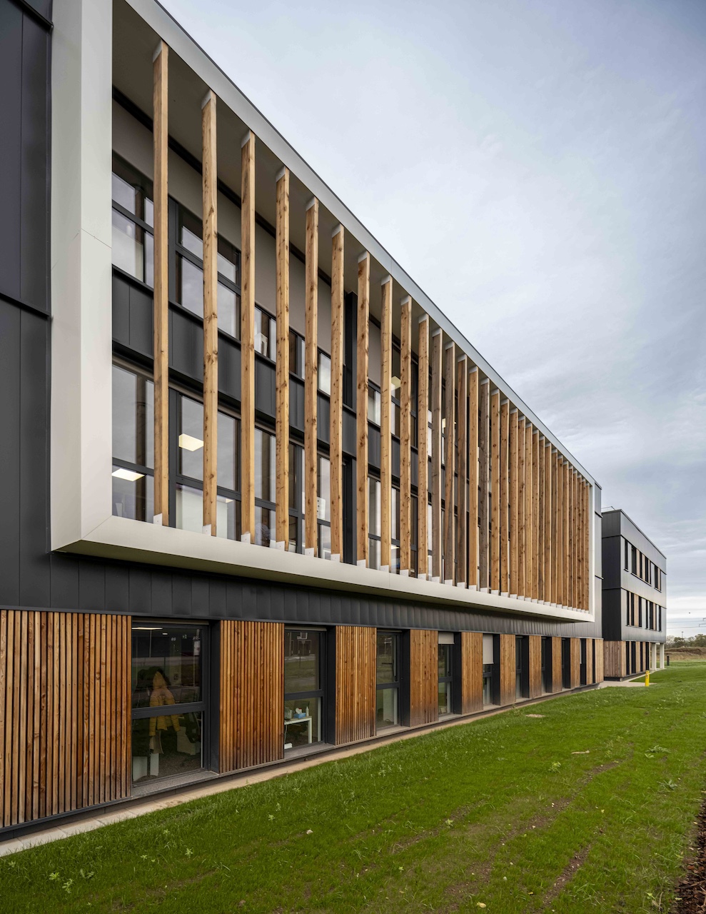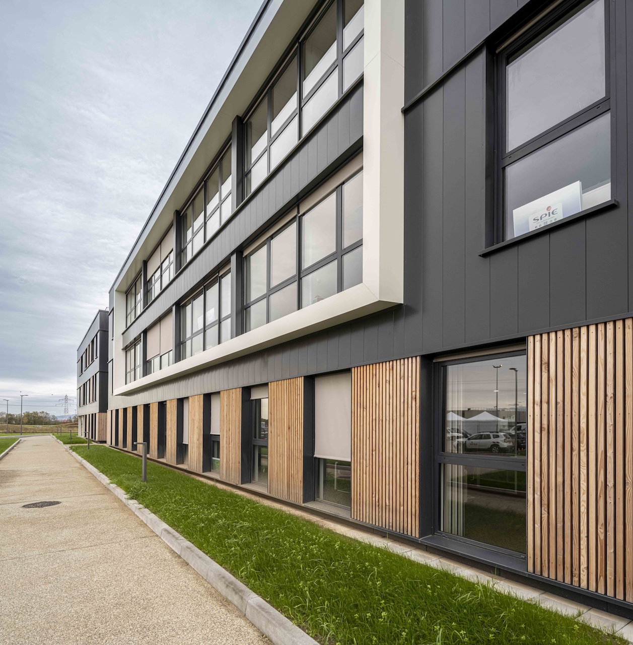 Au sein du Woody Parc, implanté dans la zone d’activité Joffre à Holtzheim, le Groupe KS a accompagné la réalisation d’un ensemble tertiaire neuf destiné à accueillir les bureaux de SPIE.
