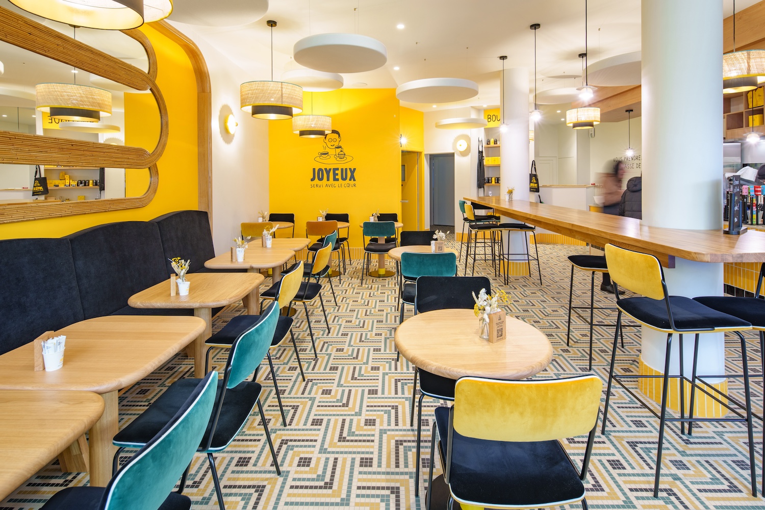 À Strasbourg, KS Aménagement a eu le plaisir d’accompagner l’ouverture du Café Joyeux en réalisant les travaux de rénovation et d’aménagement de ce nouvel établissement. Imaginé par ZÈBRE Architecture, le projet a été conçu pour offrir un lieu à la fois accueillant, chaleureux et fonctionnel, en parfaite cohérence avec l’identité et les valeurs de Café Joyeux.