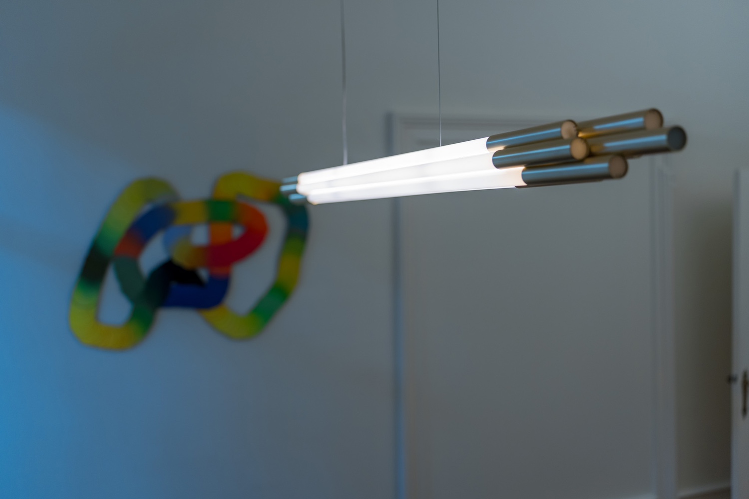 • Éclairage étudié, révélant chaque volume et dessinant des atmosphères propices à la concentration comme à la réception des clients.