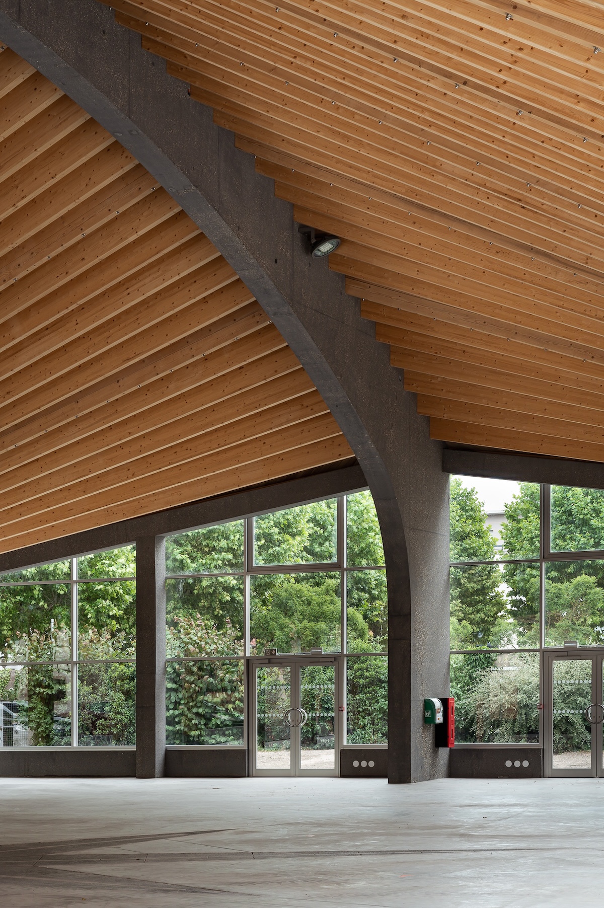 - 98 chevrons en lamellé-collé de plus de 12 mètres, au service des grandes portées et de la finesse de la courbe.