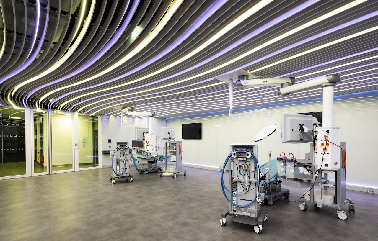 L’ouvrage se développe sur trois niveaux, dont deux en infrastructure sous le niveau de la nappe phréatique, et concentre des équipements à très forte technicité dédiés à la recherche chirurgicale guidée par l’image. Il accueille des blocs expérimentaux, des salles de conférences et un auditorium de 247 places, permettant la formation de chirurgiens du monde entier.