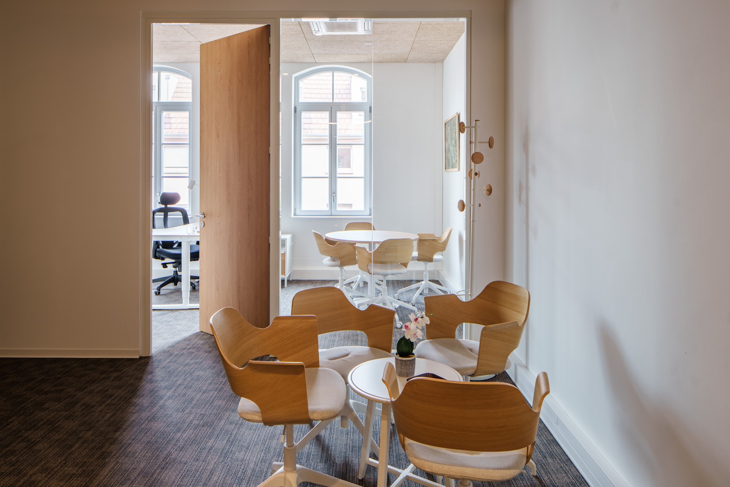 À Haguenau, KS aménagement a piloté la rénovation de trois niveaux de bureaux au sein d’un bâtiment ancien, avec un objectif clair : offrir aux équipes de Lithium de France un environnement de travail plus confortable, plus fonctionnel et adapté aux usages actuels.