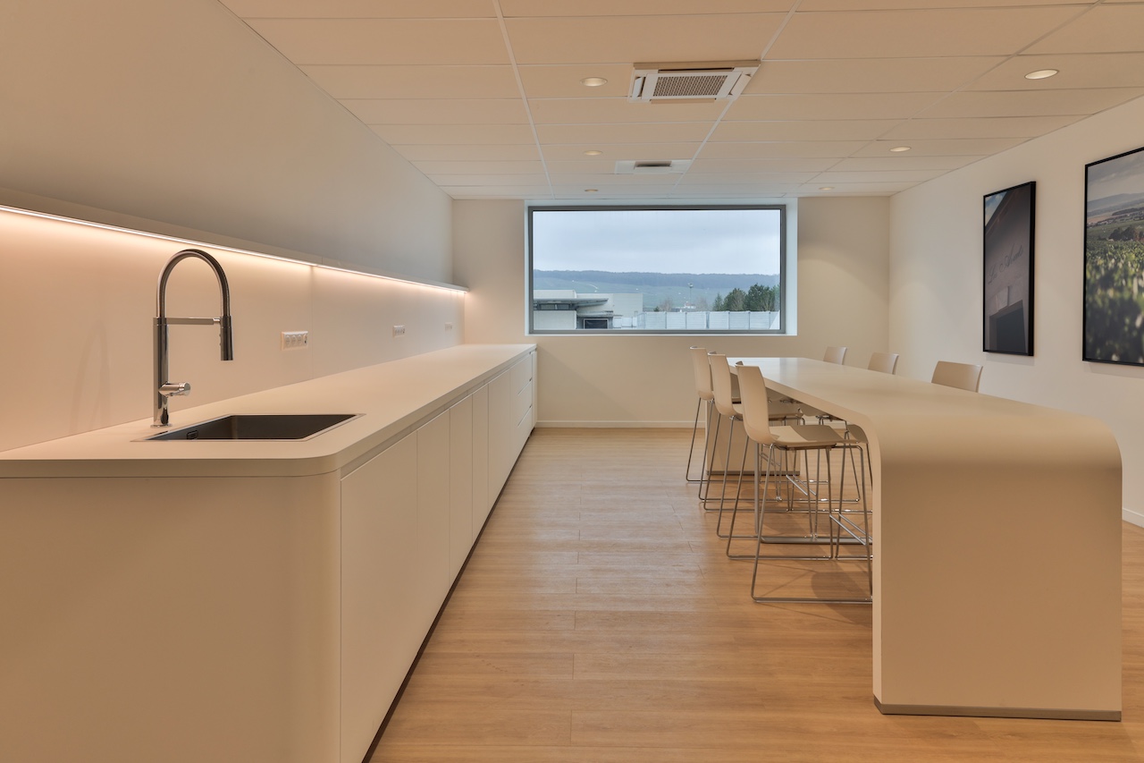 Conçu dans une logique durable, le site est semi-enterré dans la craie, offrant une isolation thermique naturelle et limitant les besoins en climatisation. La Maison a également fait le choix d’une production d’énergie significative avec 780 panneaux photovoltaïques (environ 4 500 m²), couvrant jusqu’à 90 % des besoins énergétiques du bâtiment. La partie process a été conduite par le bureau d’ingénierie CICAL et l’architecture, signée Giovanni Pace, reflète la sobriété et la maîtrise attendues à ce niveau de standing.