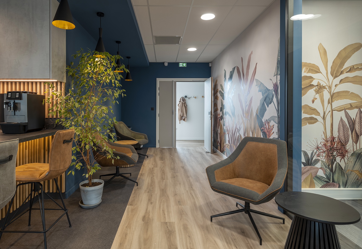 Les espaces d’accueil, de travail et de détente s’articulent aujourd’hui de manière fluide, offrant un cadre professionnel chaleureux, dynamique et stimulant.