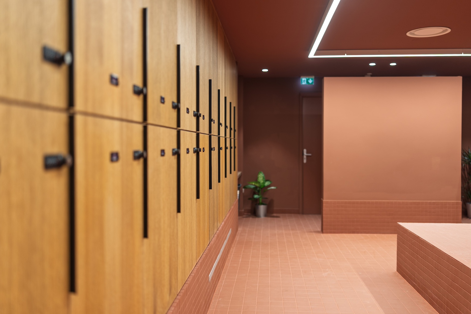 Pour l’édition 2025, l’enjeu était aussi d’optimiser les espaces intérieurs dédiés au tournoi. L’agencement des vestiaires a été réalisé sur mesure avec des éléments fabriqués sur mesure dans notre menuiserie alsacienne basée à Bischheim, puis posés sur site : bancs robustes, rangements fonctionnels, placards adaptés aux contraintes d’exploitation.