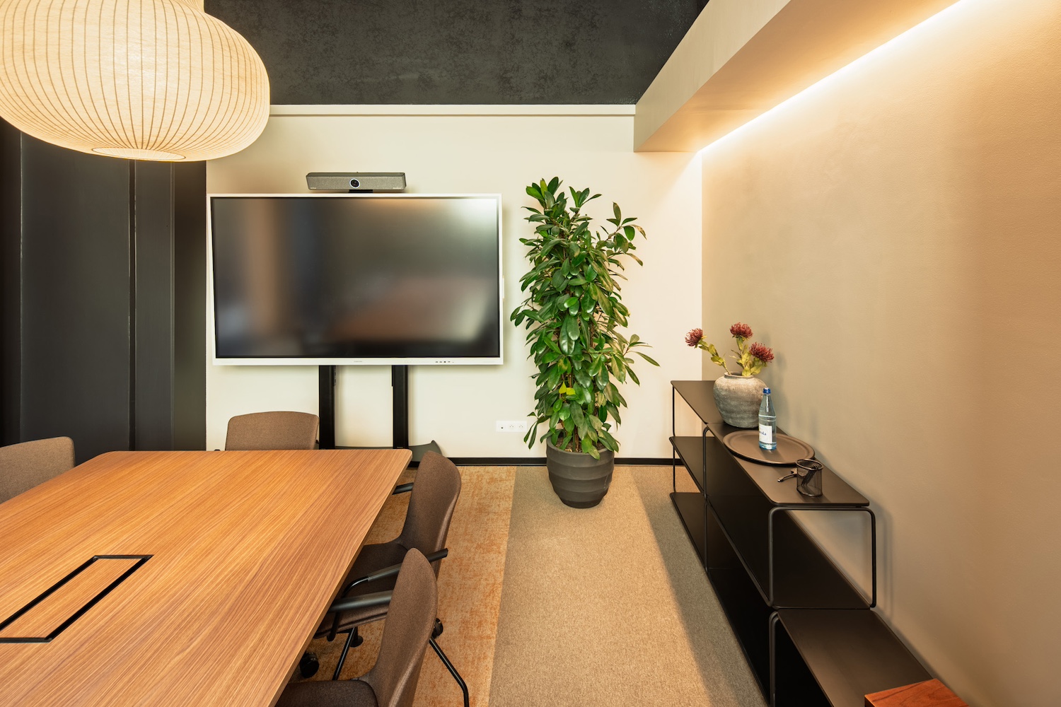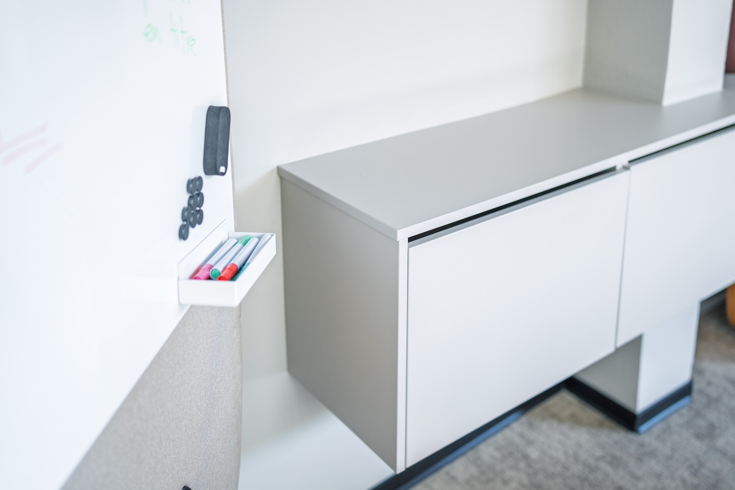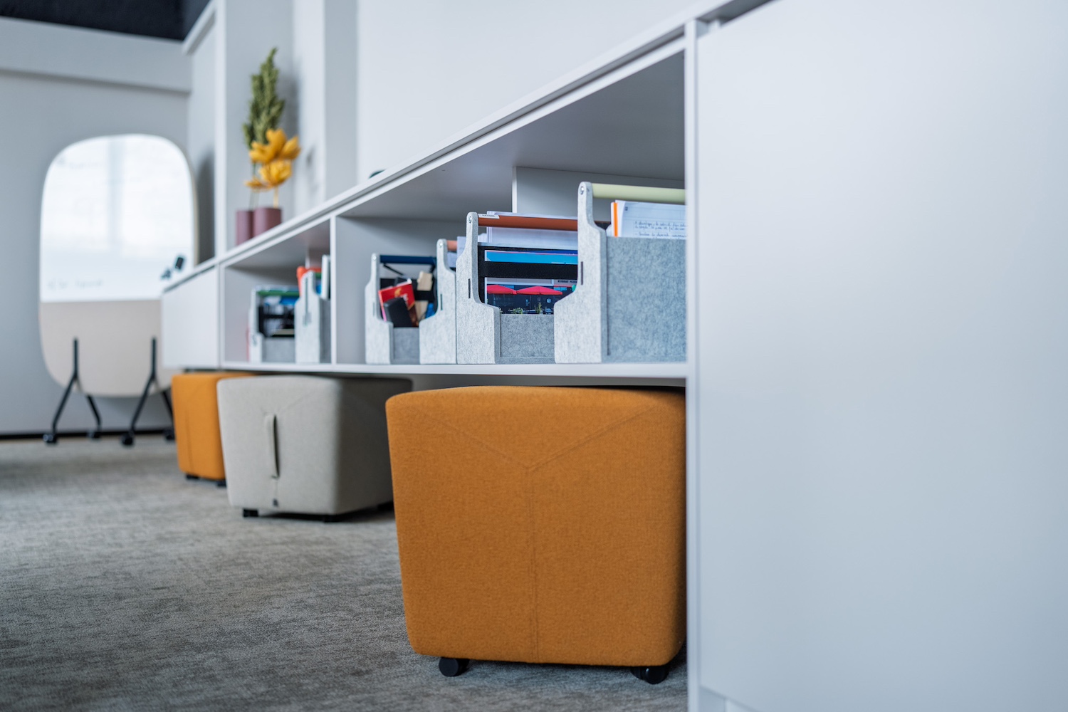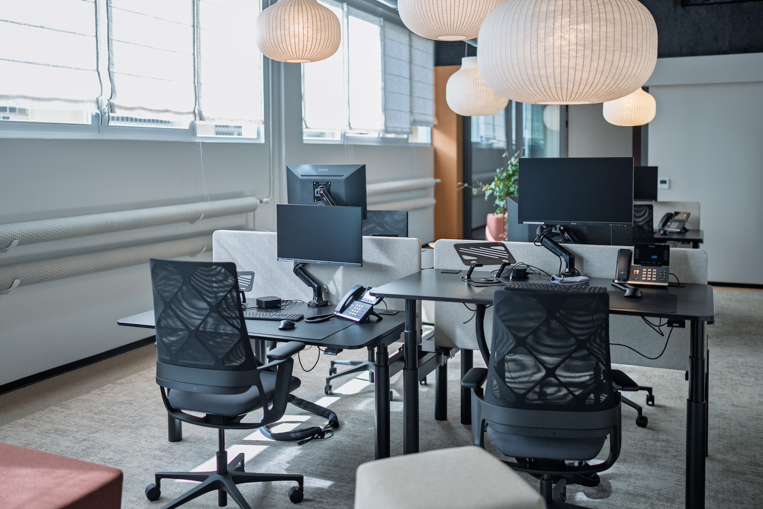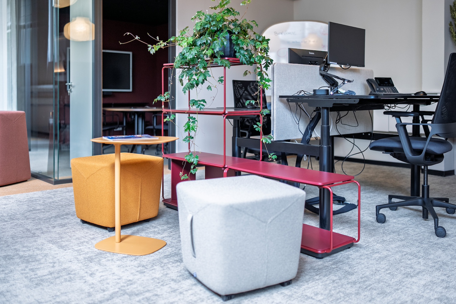 • Un espace modulable, conçu grâce à d’élégants panneaux de tissus sur rails offrant flexibilité, confidentialité et confort acoustique.