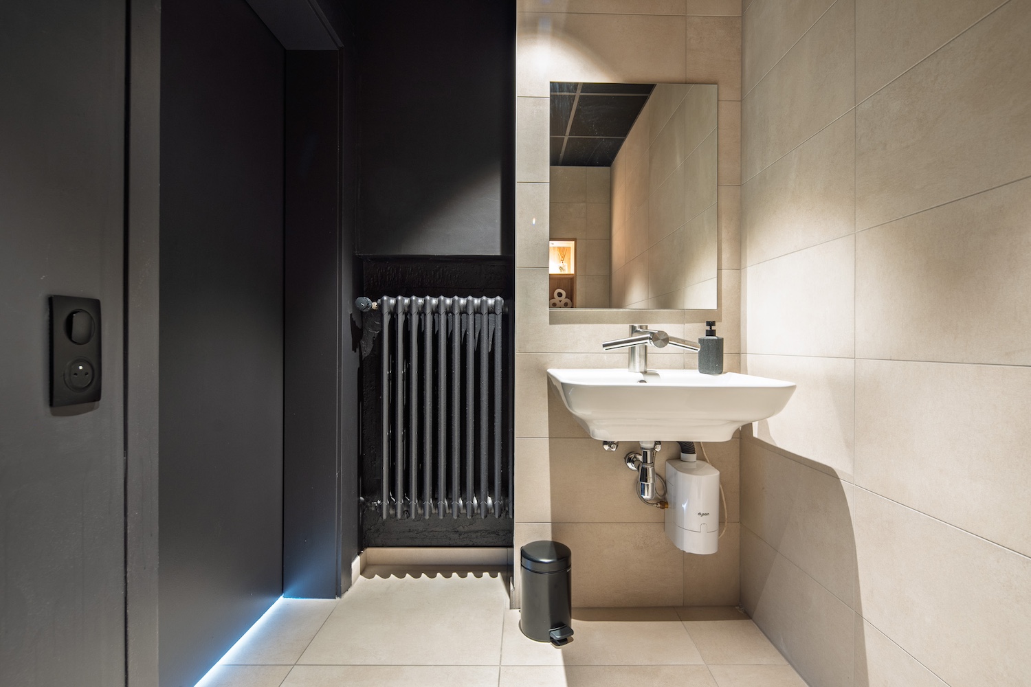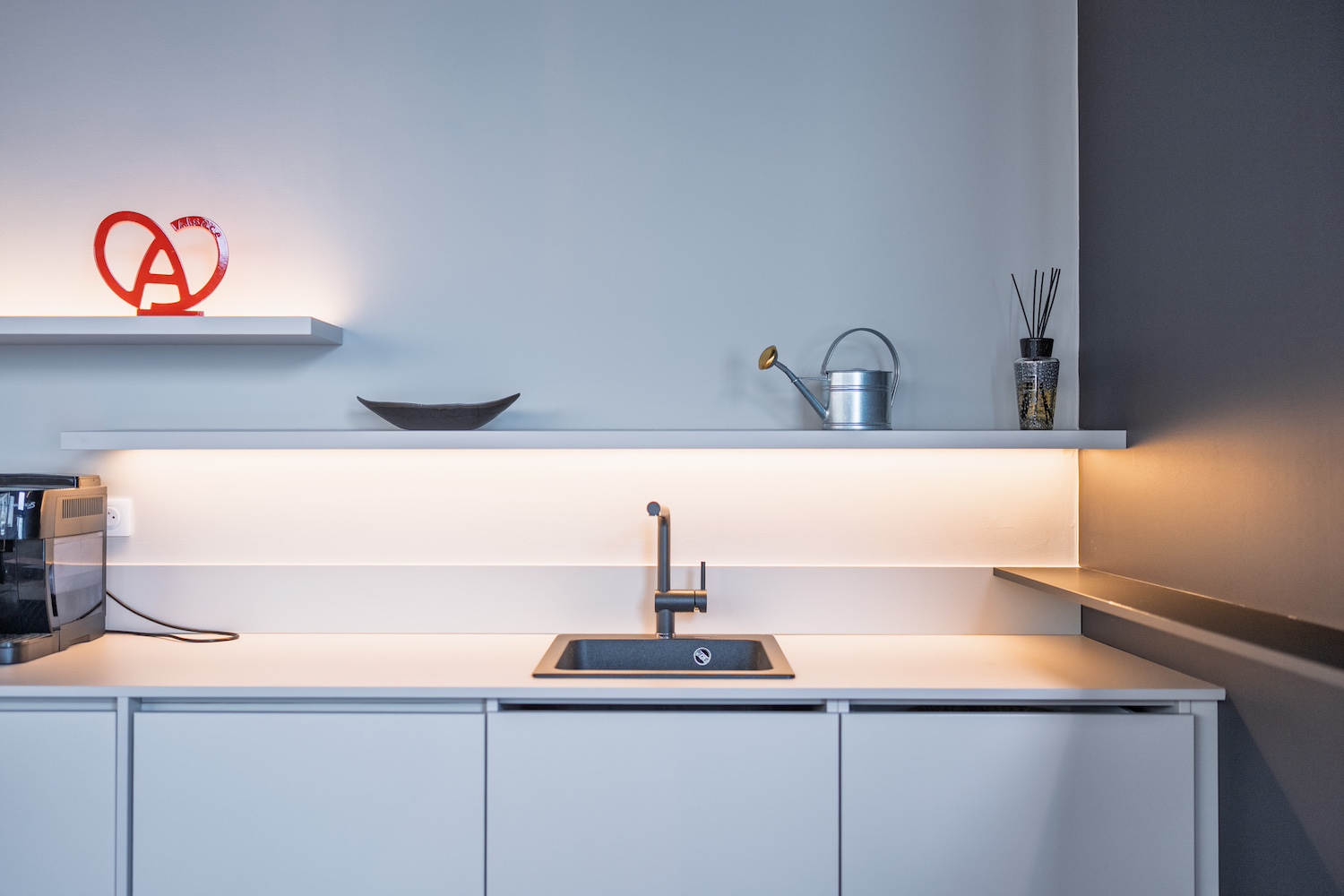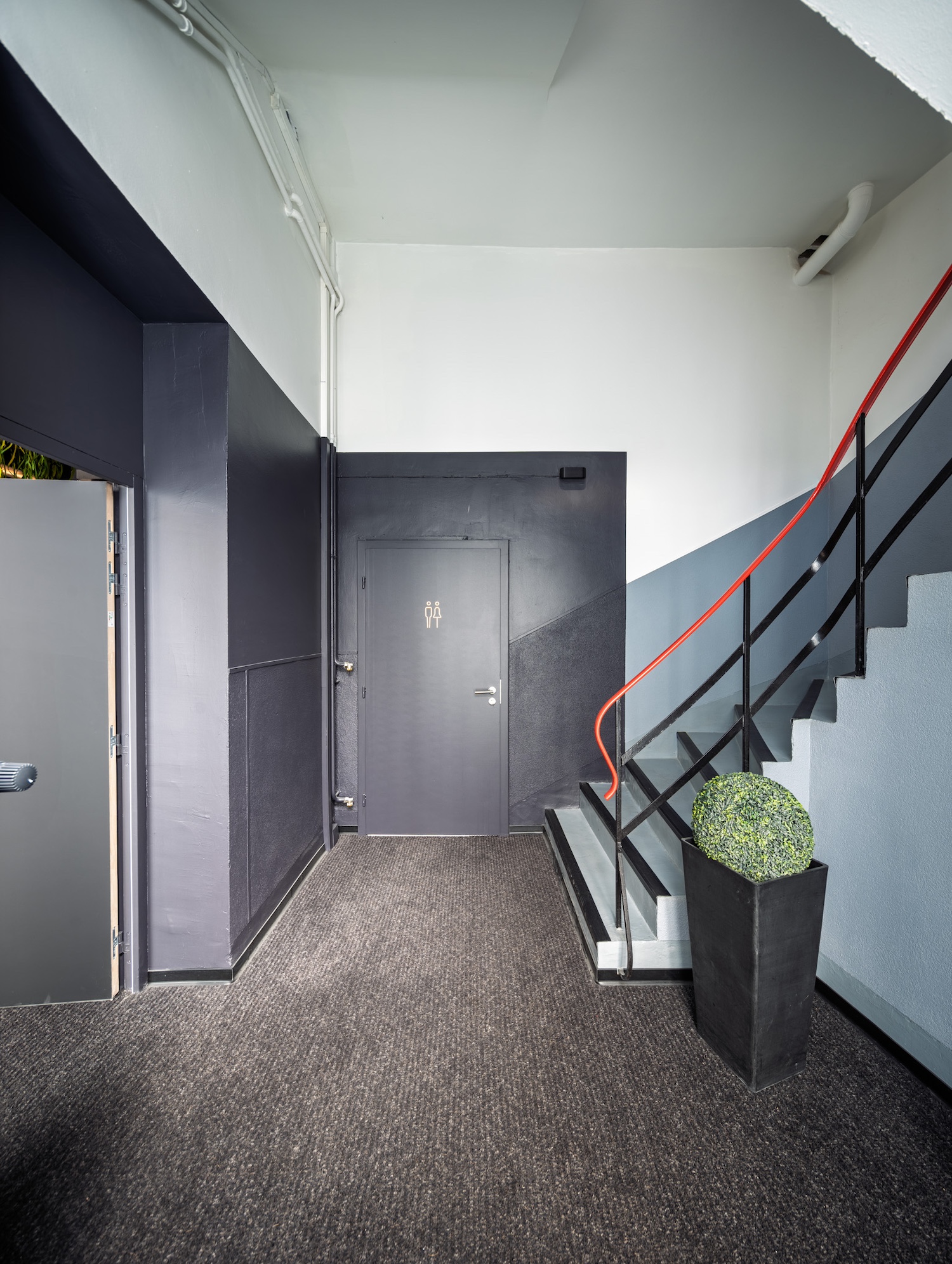 • et une mezzanine coupant la lumière naturelle. Autant de contraintes qui ont été repensées comme des opportunités de créer un lieu singulier, fonctionnel et affirmé.