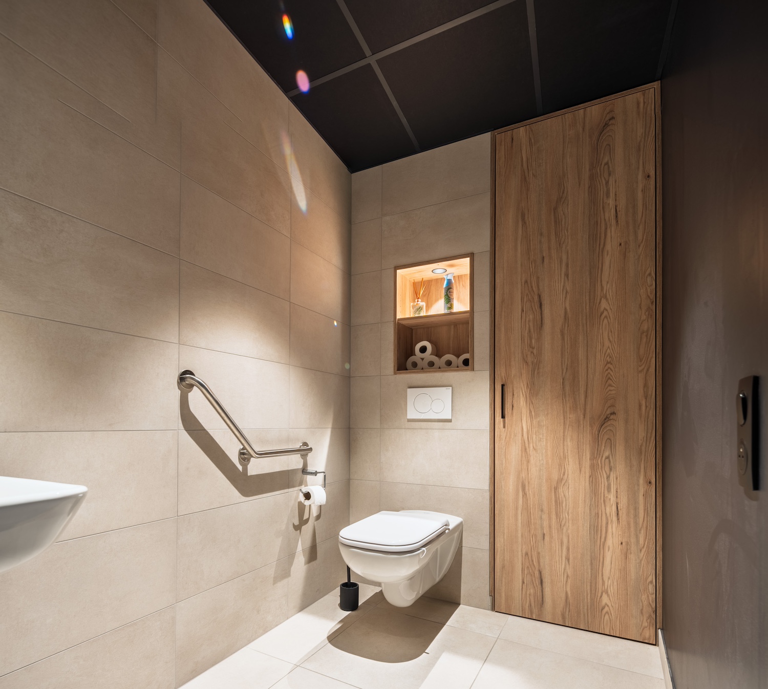 • Un flocage subtilement teinté, pensé pour allier acoustique et esthétisme, tout en procurant la sensation d’un plafond adouci et enveloppant.